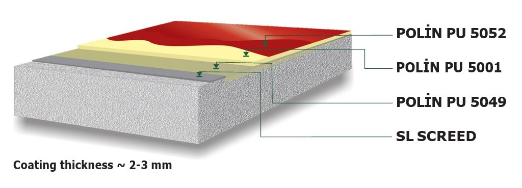 | 2- | Polin PU 5001 | 2,20 kg/m2 – 3,50 kg/m2 | PU two-component, self-levelling, side elastic coating |